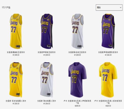 东契奇的球衣也差不多,价格也是1084元-1699元之间。还有我们很熟悉的布朗尼,他的球衣与两位当家球星一个价。