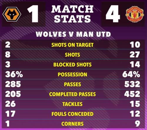 曼联做客莫里纽克斯球场4-1大胜狼队,排名升至英超第6位,与第5名切尔西同分,但净胜球少6个。虽然本场大胜,但如果想要实现冲击欧冠的目标,红魔的攻防仍需大幅度改善。这场取胜,主要因为主队太差!