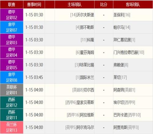 其他赛事比分: