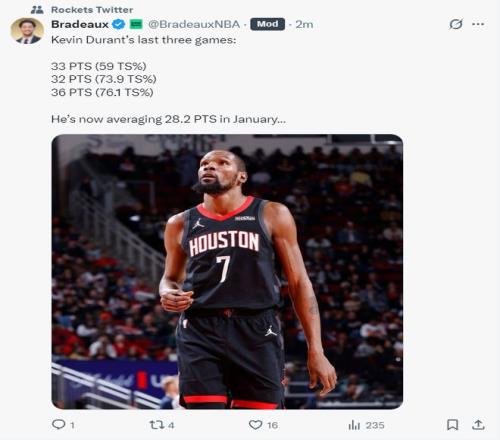 北京时间1月27日,火箭以108-99逆转灰熊。这场比赛乌度卡险些就要背锅了,好在杜兰特、申京两个核心在下半场接连的爆发,杜兰特第三节单节12分为球队缩小分差,末节开场是申京发力反超,杜兰特连续两个三分球直接锁定胜局。