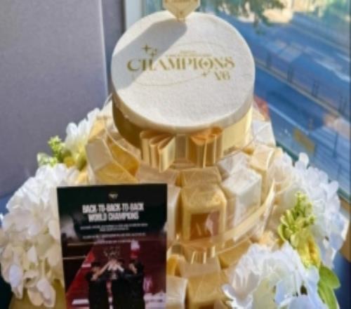 HLE分享T1送来的S赛夺冠庆祝年糕:祝贺T1达成V6六冠王!